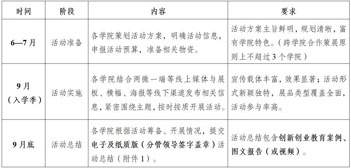 大学生taptap成果展以各学院为单位,鼓励联合学院学工办,以入学季为契机,以学校或学院标志性场馆为主要活动场地,通过实物展、设计展板、体验展、路演、交流论坛等各种形式自行策划、组织、实施主题活动,充分彰显各学院taptap特色与品牌,营造“人人竞相创新,人人尽展其才”的湖大氛围。