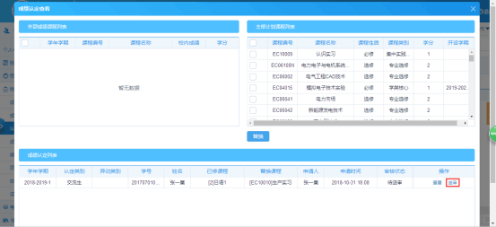 (5)替换以后界面下方会出现一条替换的数据,然后进行送审,也可在成绩认定申请界面进行送审