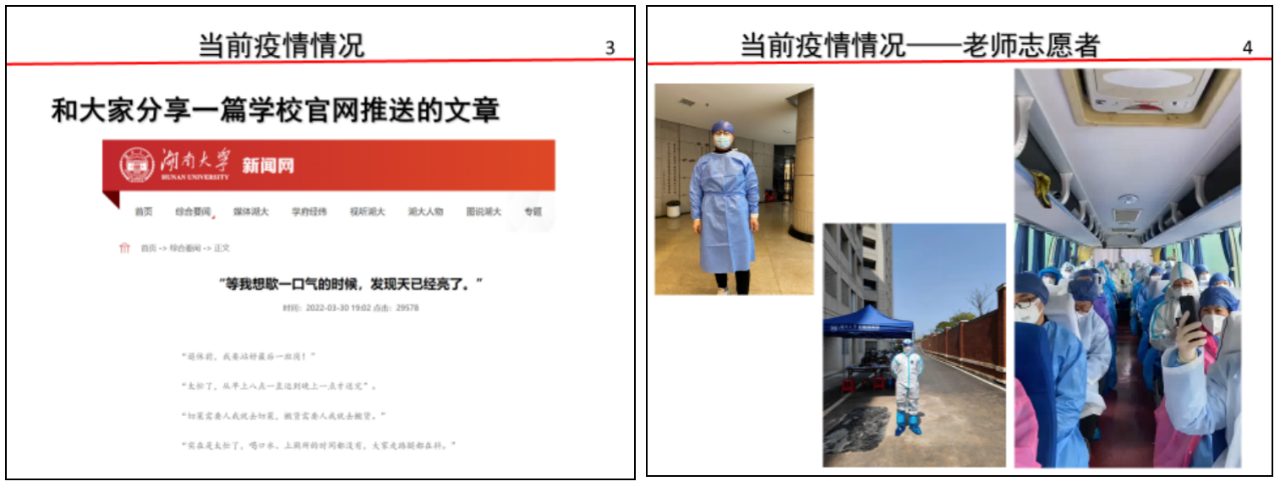“大家都太艰难了,要么集中隔离,要么居家隔离,我上课时尽量和学生们一起加油鼓劲,告诉大家隔离的意义。不用学院和学校说什么,我们老师都会以最好的心态最积极的热情来对待学生。”