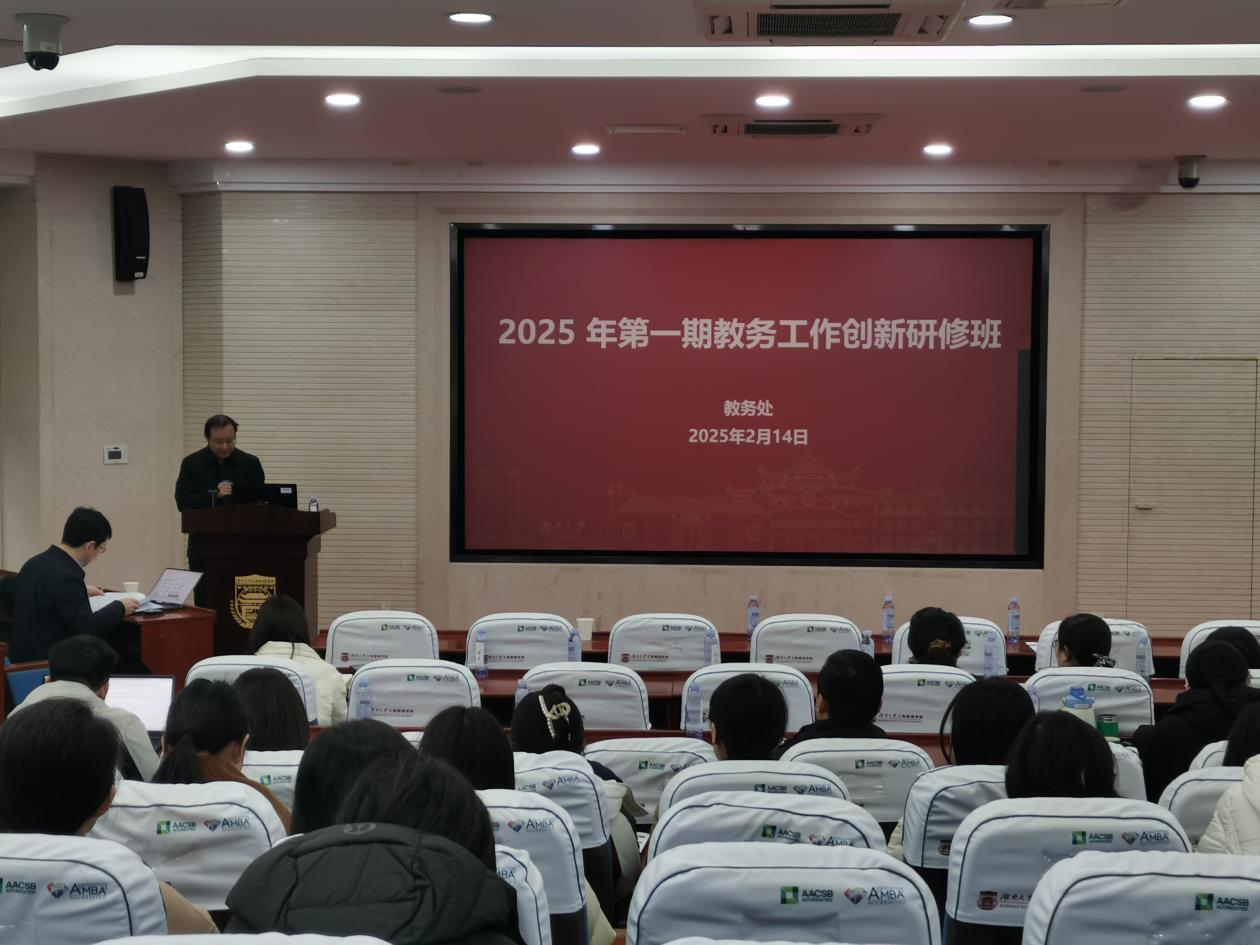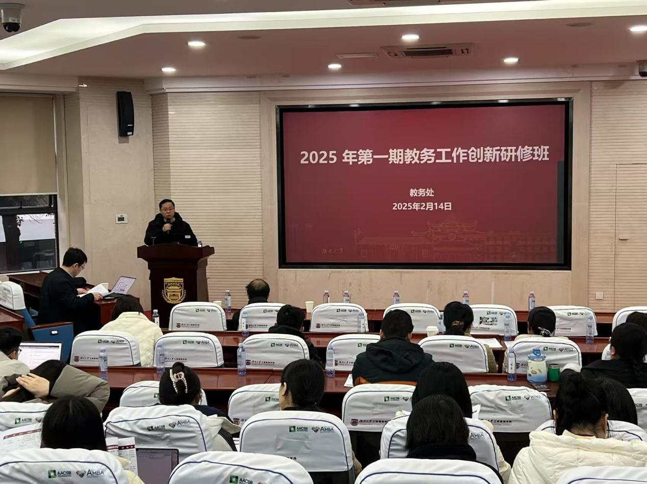 2月14日,教务处以“赋能未来 提质增效”为主题,组织开办了2025年第一期教务工作创新研修班。教务处处长张屹出席研修班并讲话。本次研修班由教务处副处长全松柏主持。