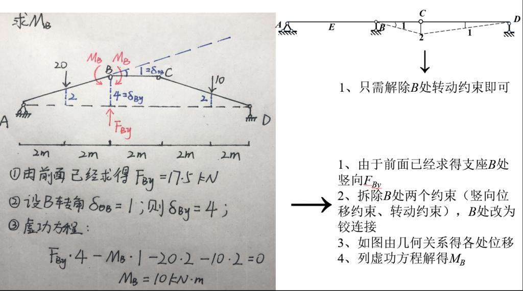 还有一次理论授课,内容是刚体体系的虚功原理,我和同学们一起完成了例题计算过程。课后有位同学利用前一道例题中已经算出的支反力通过虚设两个自由度的刚体位移,再次计算其他内力。方法不一定简单,但是他用自己的方式应用了虚功方程。