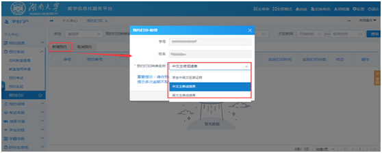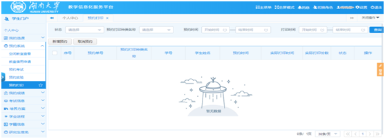 (2)点击“学生门户->预约系统->预约打印”进入如下预约打印页面。