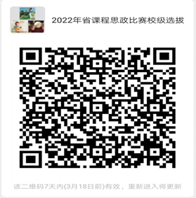 2.原则上各学院须推荐1-3个教学团队参加校级选拔(外国语学院须推荐不少于3个教学团队),并组织参赛教师填写《2022年湖南省普通高校教师课程思政教学比赛校级选拔赛推荐名单汇总表》(见附件3),并于3月18日前提交至教师教学发展中心。竞赛后续事宜将在下方微信群通知:
