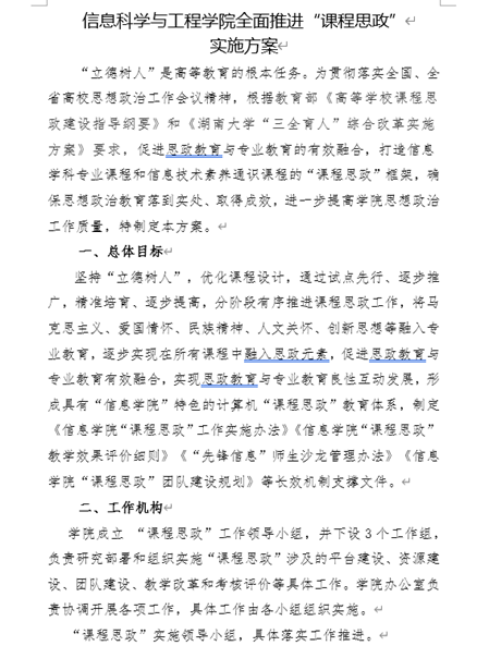图1《信息科学与工程学院全面推进“课程思政”实施方案》