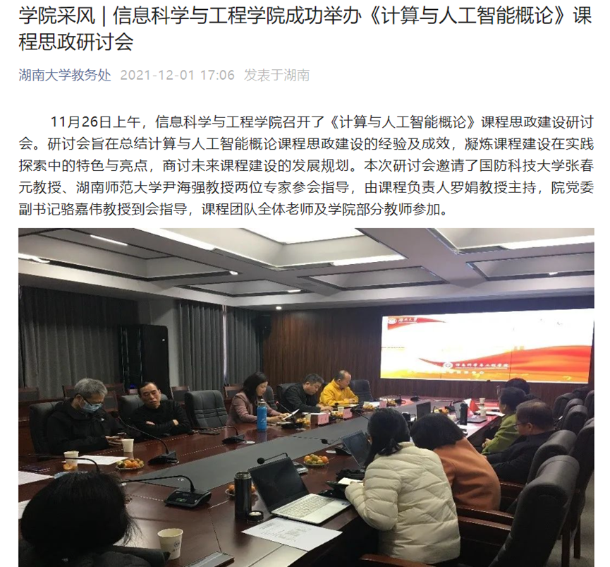 根据不同课程的特点和育人要求,分别明确通识必修课程(计算与人工智能概论)、专业课程、实践实训类课程的课程思政建设重点。各门课程针对性地修订教学大纲,各有侧重地开展课程思政教学。充分运用团队研讨、集体备课等手段,就课程思政教学的改革与实施加强互动交流,把知识传授、能力培养和思想引领融入到每一门课程中。开启“先锋信息”师生沙龙。