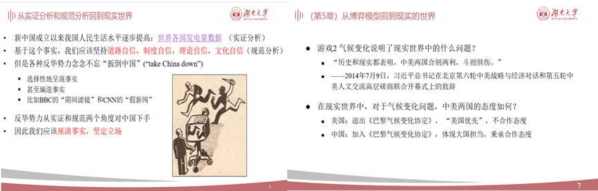 2.政策部分。讲解我国经济政策背后的经济学原理,解释政策工具的过去、现在和未来,让学生深入理解国家政策的出发点与落脚点。例如,介绍我国贸易政策演化时,揭示用先进标准倒逼产业升级的政策逻辑,并体现我国创造新的竞争优势,再创发展奇迹的决心。
